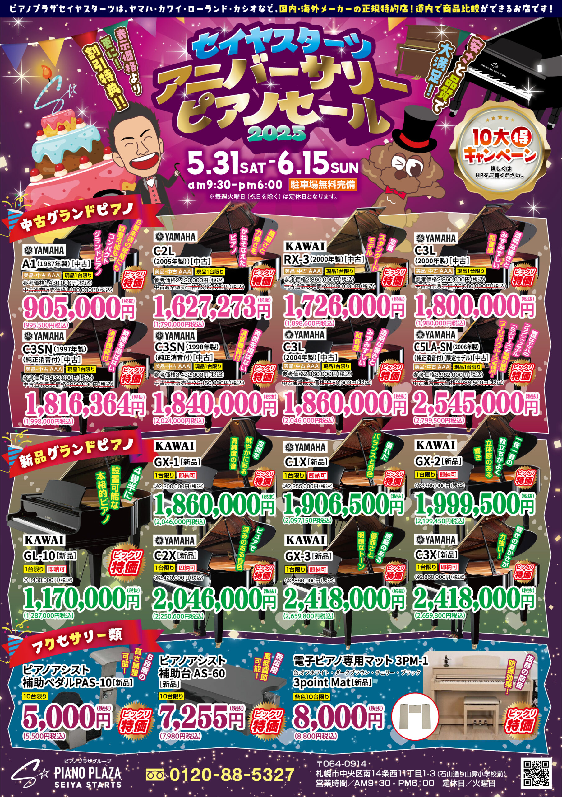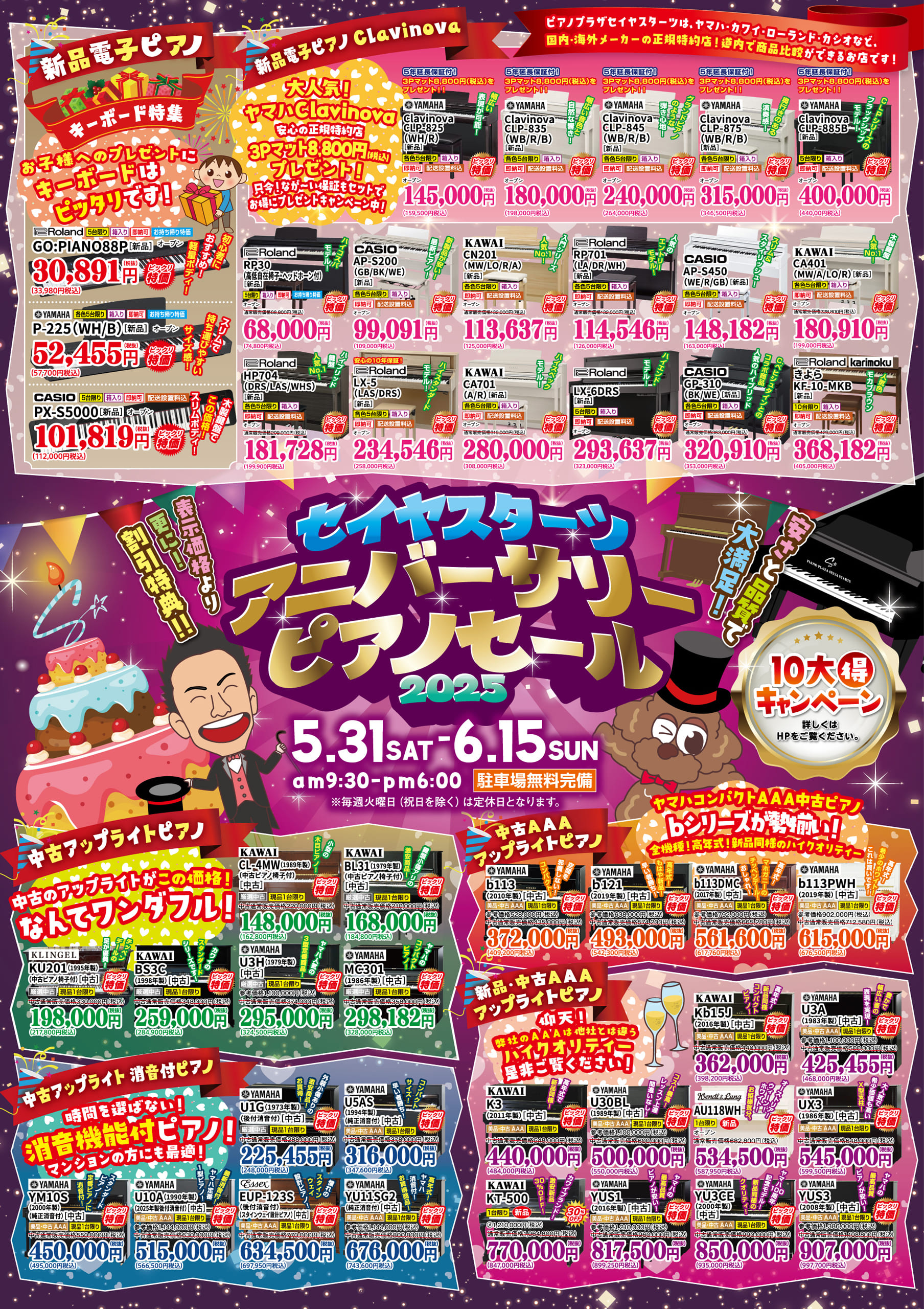 セールでお買い求めの新品・中古ピアノ!充実の弊社独自2年+5年無料の7年保証延長サービス!