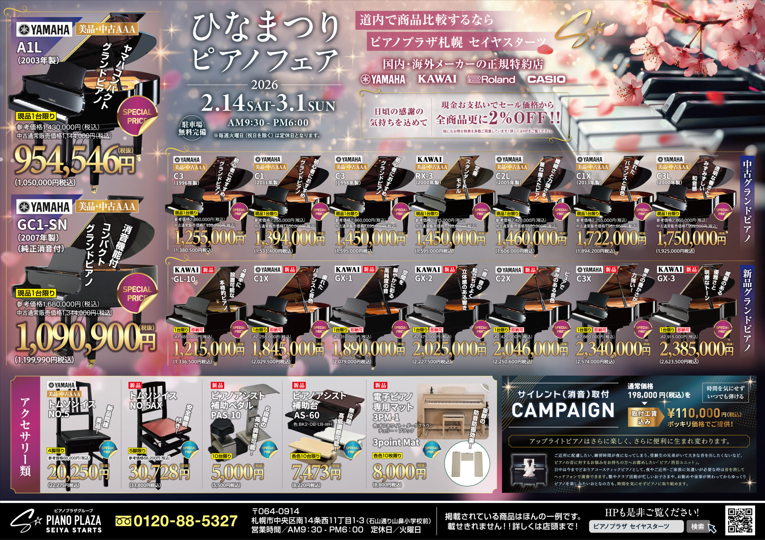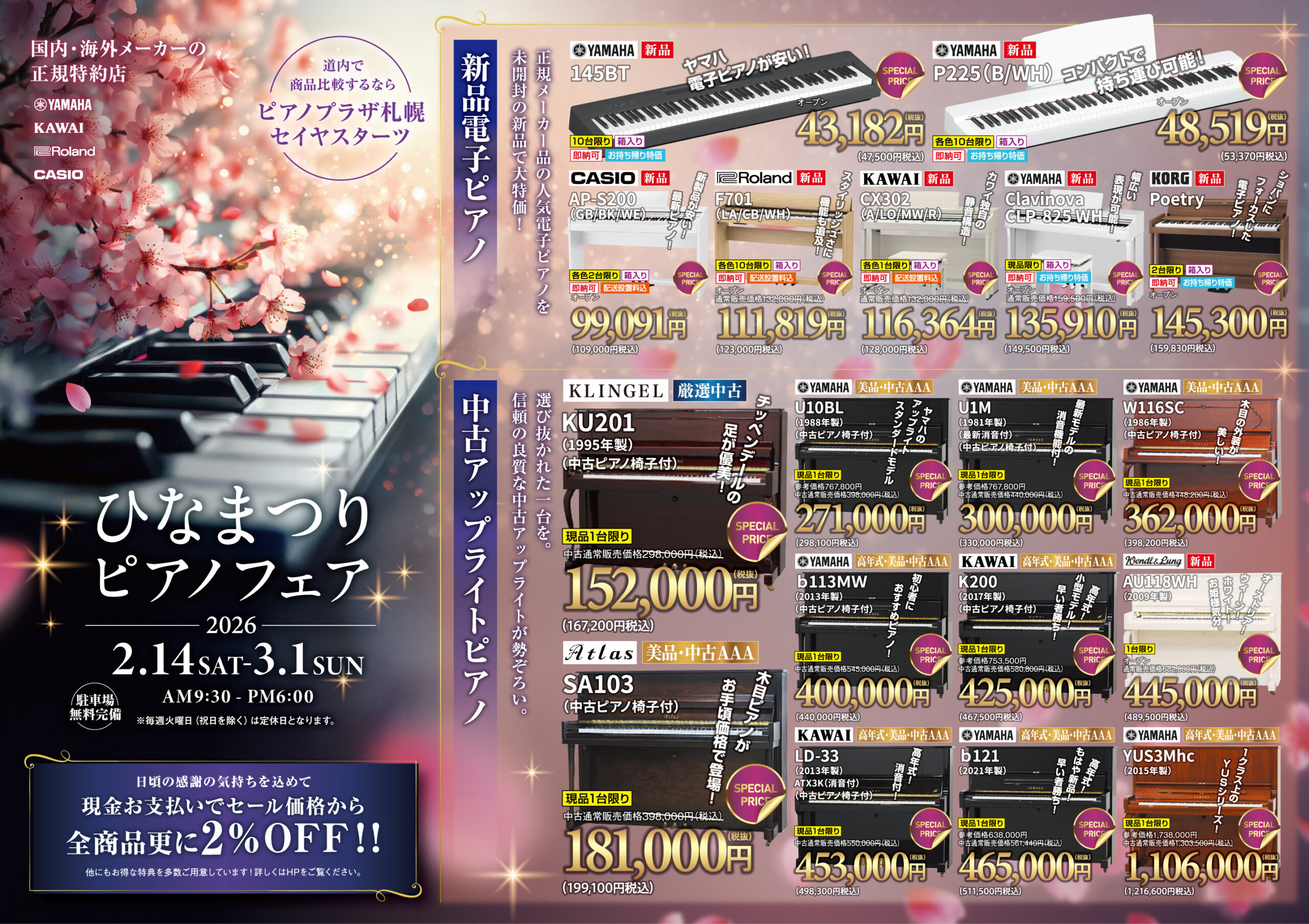 セールでお買い求めの新品・中古ピアノ!充実の弊社独自2年+5年無料の7年保証延長サービス!