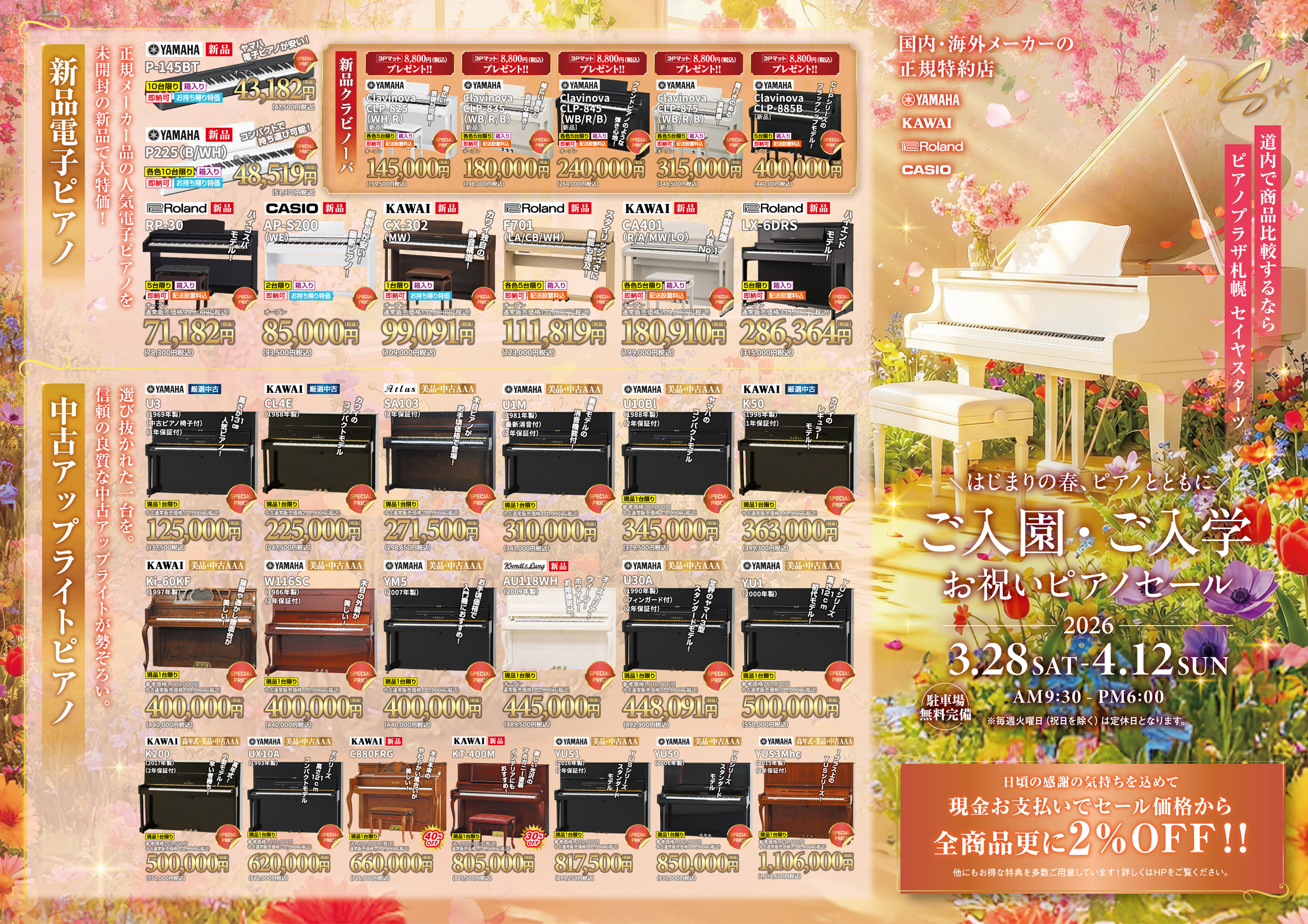 国内外全メーカーを扱うピアノ専門店新品・中古ピアノ・デジタルピアノ 道内展示台数No.1 国内外全メーカーを扱うピアノ専門店新品・中古ピアノ・デジタルピアノ 道内展示台数No.1